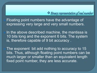 A binary number consists of several bits. It seems pretty straightforward for integers ie. It means 0 has two different representations one is -0 eg 1 1111 in five bit register and second is 0 eg 0 0000 in five.